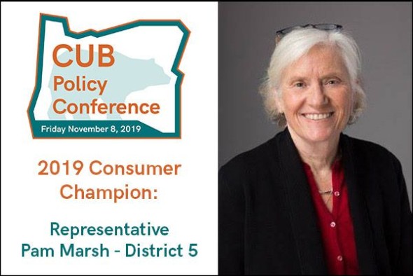 CUB is pleased to announce Oregon State Representative Pam Marsh as our 2019 Consumer Champion. CUB will officially honor Rep. Marsh with the award at our ninth annual Energy Policy conference, Clean Energy Communities / Reliable Systems on Friday November 8 at the Downtown Portland Hilton, where she is also the closing keynote speaker.